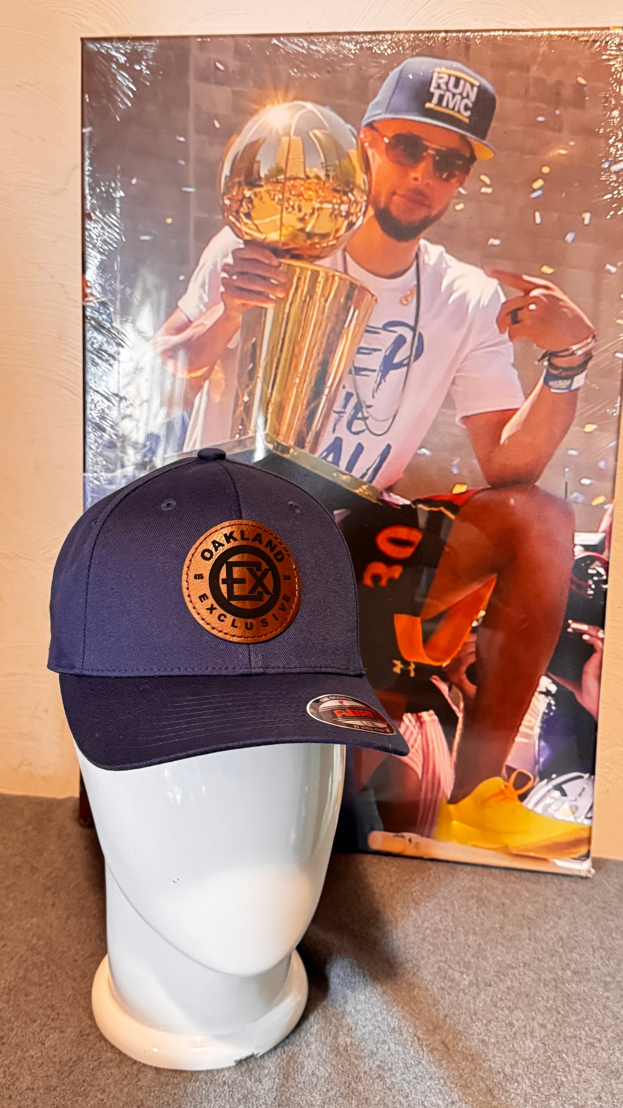 Dark Brown Leather Patch. 6-panel fitted cap for style and comfort, featuring 8 rows of stitching on the structured cap with silver underbill.